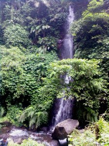 Jam set 6 udah dibangunin buat Solat, mandi, sarapan. Menu sarapan pagi ini bener-bener bikin ngiler deh. Nasi putih, ikan digoreng tapi enak banget deh beda sama kalo bikin dirumah, tumis kangkung (enak banget), tahu, sambel. Jam 9 kita pamit, berhubung kita mau mampir ke Curug Cipendok di Banyumas dulu & pulang lewat pantura. Jalur kearah Banyumas sama kaya jalur pas mau pergi ke undangan, jadi ga terlalu susah. sampe di perempatan kita ambil kanan kearah Banyumas, dan lagi-lagi ngelewatin jalan yng belum pernah saya lewatin sebelumnya, jadi no commen deh buat masalah jaur di tulisan kali ini hehe. Lumayan lama juga sih buat sampe ke pertigaan kearah curug, untungnya di pinggir jalan ada 1 penunjuk arah yang jelas-jelas nulis nama :Curug Cipendok" nah, gitu donk, objek wisata pun diinformasiin di papan penunjuk jalan biar ga kesasar & susah nyarinya heu heu (yaaah, ini mah udah terkenal kayanya makanya ada infonya) Daan sampelah kita di jalan masuk ke curugnya. Jalannya yaaa seperti biasa, jalan kecil, lurus terus kearah bukit dengan view yang pasti jarang rumah-rumah. Sampe diujung jalan yang kita lewatin, jalannya bercabang, kita ambil ke arah kanan, dan dari sini jalannya udah mulai nanjak-nanjak, sampe di 1 tanjakan kita semua harus turun soalnya mobilnya ga kuat. Weeeww kebagian turun juga, perasaan selama touring & nge-trip pasti kebagian sesi turun dari kendaraan & jalan kaki hahaha lumayan juga ni nanjaknya bikin ngos-ngosan, luamyan panjang & miring juga. Sampe diujung tanjakan, ternyata ada 1 tanjakan lagi, disini ahirnya yg naek mobil cwe-cwe aja, cwonya jalan hehehe.